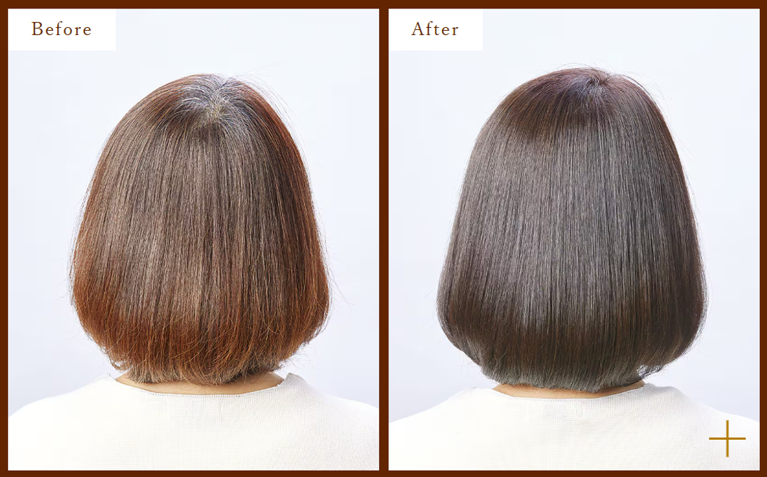 Based on feedback from salons and end-users regarding the desired performance of gray hair color, we focused on the key functions of coverage and color retention, shine, texture, and fragrance, and developed a new technology. The synergy of four advanced development technologies has evolved this gray color formula into one that fully covers gray hair while delivering a glossy, smooth, and touchable finish. Thanks to the synergy of four innovative technologies, our gray hair color not only delivers reliable gray coverage but also leaves hair looking radiant, feeling smooth, and smelling delightful.